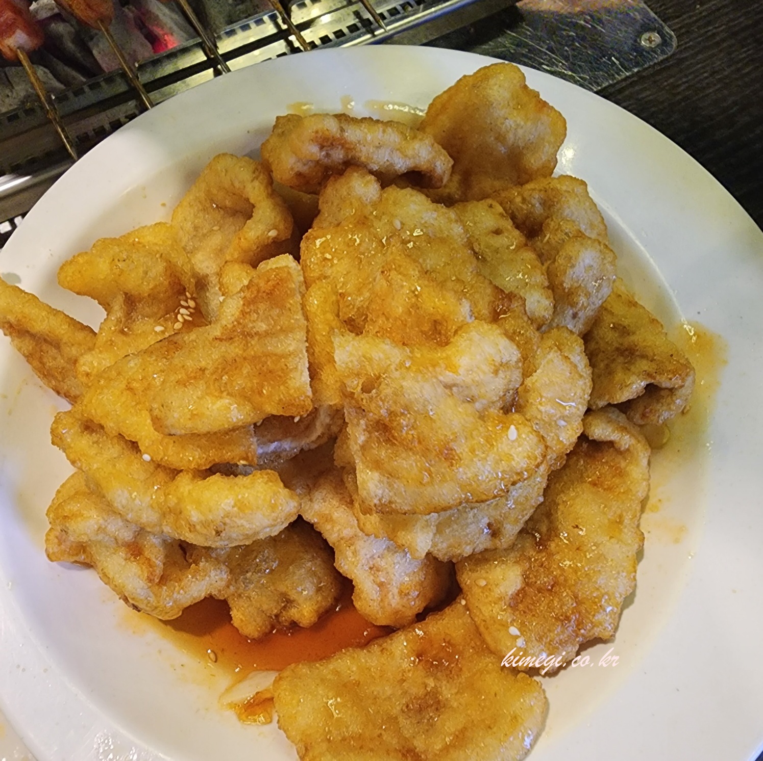 세트로 주문한 꿔바로우입니다. 음...그냥 꿔바로우였습니다. 양꼬치를 하나 더 주문하는 것이 좋을 것 같아요. 튀김옷이 조금 두껍고 덜 바삭한 것 같더라고요.