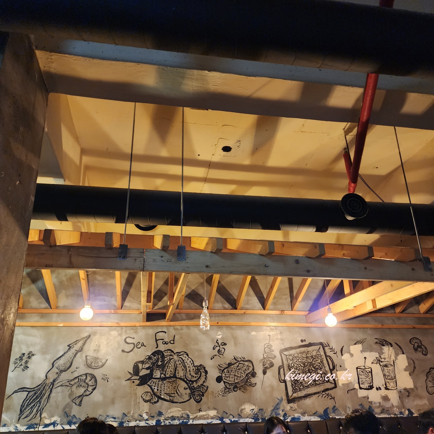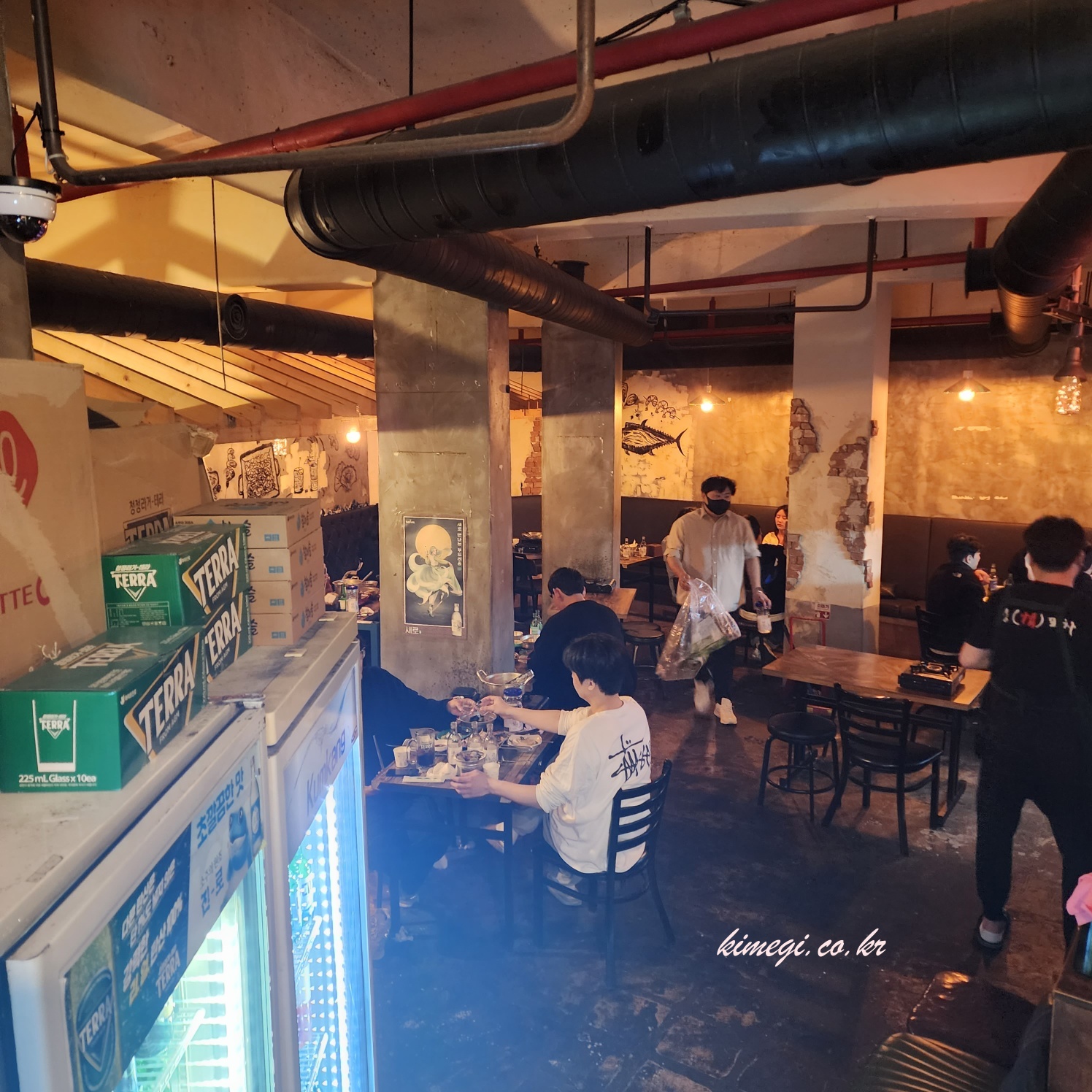 안쪽에 이렇게 테이블을 붙여서 앉았는데 넓어서 편하고 좋았어요. 술병은 안보이지만 1차에서 엄청 마셨어요. 2차 3차까지 갔는데 집에 어떻게 갔는지 모르겠네요. 왕십리 진짜 요즘 핫한 곳인 것 같아요. 역시 핫플레이스는 돌고 도는 것 같아요. 왕십리 메종드 혁이네 정말 추천합니다. 분위기 좋고 안주도 저렴하고 맛있는 곳이에요.