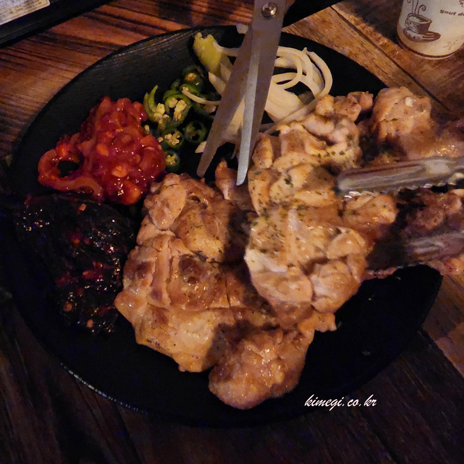 배가 차지 않아서 소금구이 닭소금구이를 주문했어요. 조리가 다 되어져 나왔고 오징어 젓이 같이 나오더라고요. 정말 특이했어요. 양파와 고추와 함께 먹으니까 너무 맛있었어요. 여기 안주 폼 미쳤습니다.