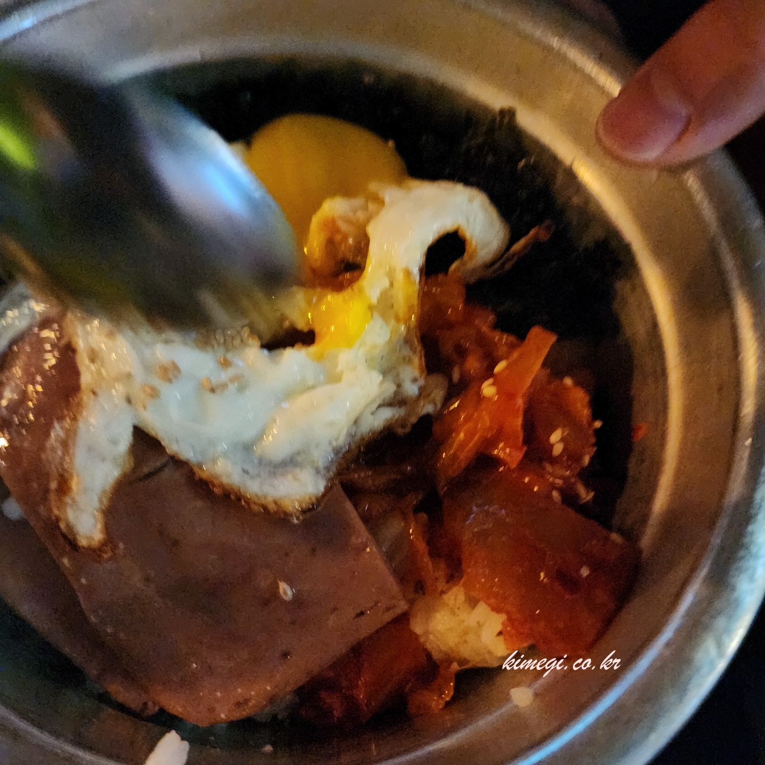 남자 5명이라 역시 배가 고픕니다. 바로 스팹 비빔밥을 주문했어요. 얘네들을 만나면 스팸비빔밥은 비비자마자 순식간에 없어져요. 맛보다는 그냥 배채우기입니다.