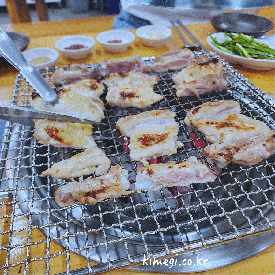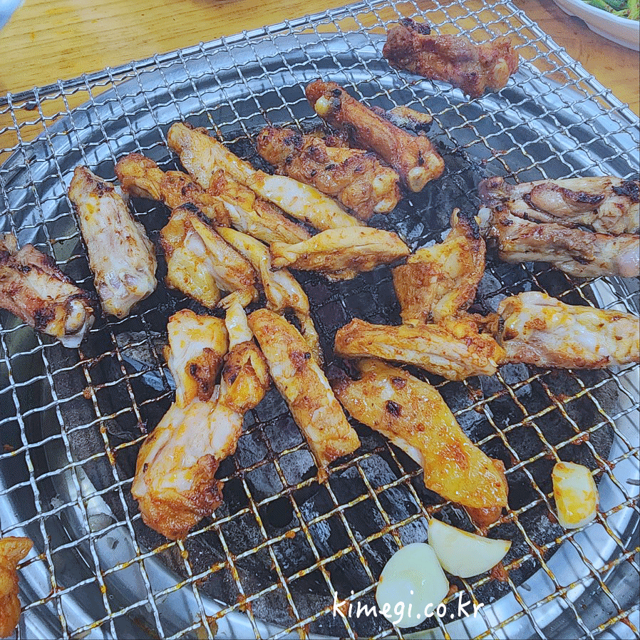 초벌이 되어 있고 숯의 불이 좋아서 아주 맛있게 구워집니다. 진짜 맛있는 기름진 닭다리살이 맛있게 구워집니다. 공릉 맛집 춘천중앙로숯불닭갈비 구이 진짜 맛있습니다.