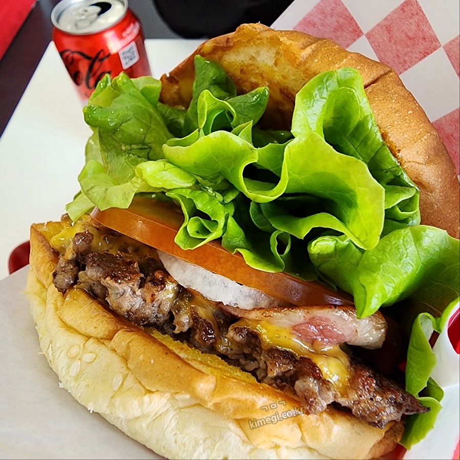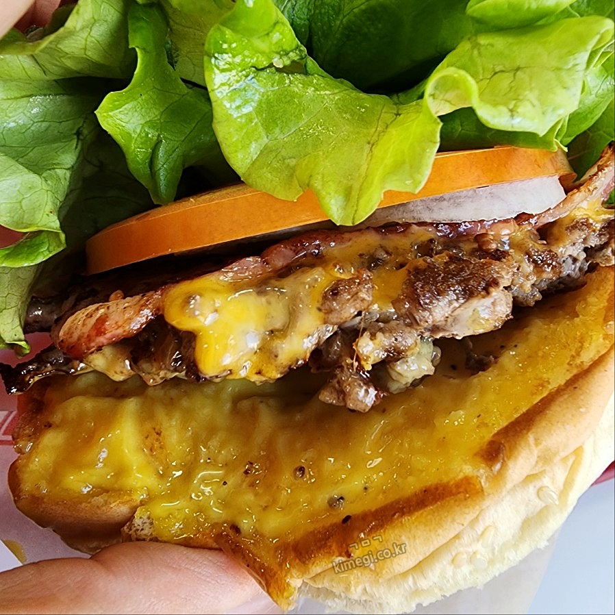 시그니처버거는 소고기 패티에 베이컨, 치즈, 양파, 토마토, 상추가 들어있고 빵에 특제 소스가 발라져 있습니다. 소스가 진짜 너무 맛있어요. 패티도 직접 만들어서 아주 고소하고 맛있습니다.