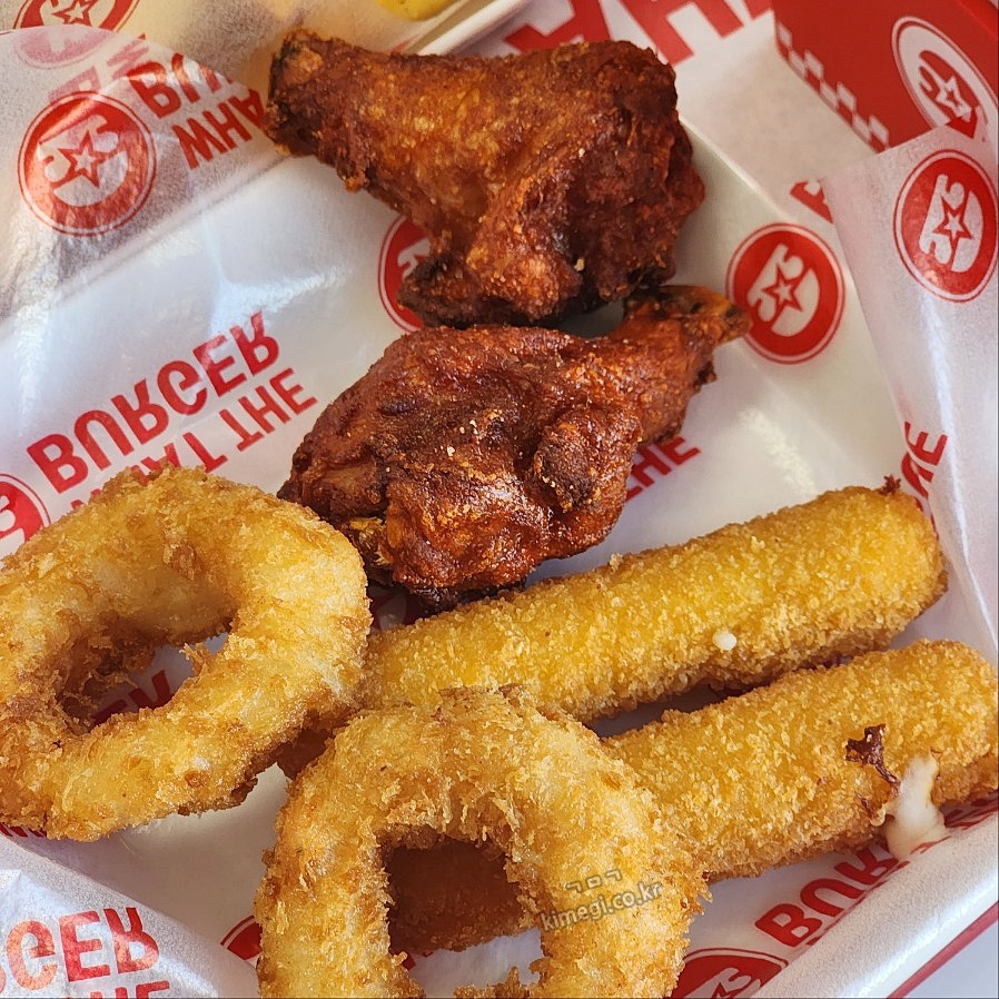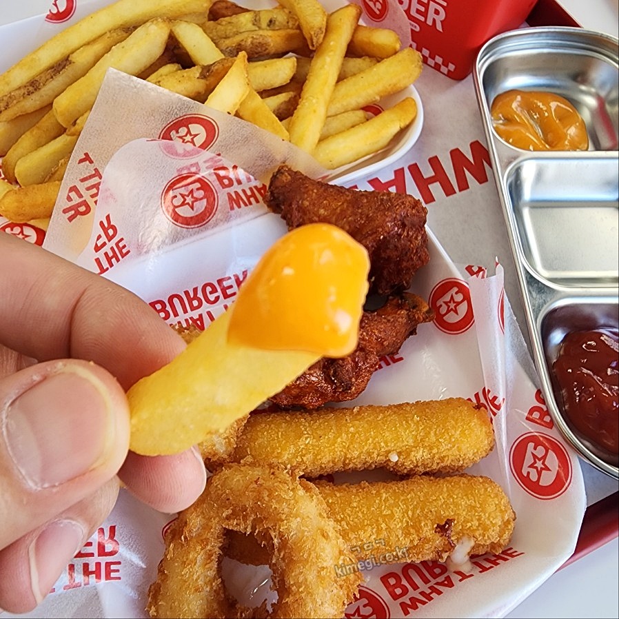 감자튀김은 세트메뉴로 함께 나온 사이드고 따로 치즈스틱, 새우링, 왓더봉을 주문했습니다. 아침을 조금 먹고 기차를 타고 바로 와서 둘 다 엄청 배가 고픈 상태였어요. 이따가 god 콘서트에 가서 신나게 놀아야 해서 맘먹고 주문을 했습니다.