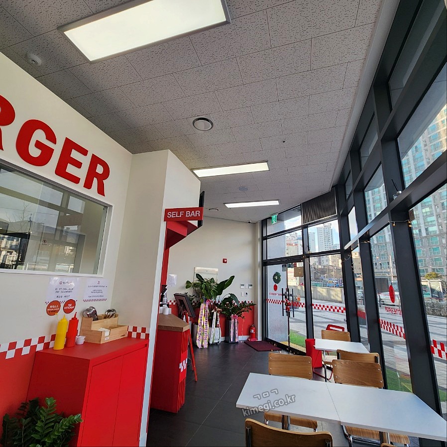 왓더버거 내부는 아주 깔끔하고 좌석이 많았어요. 방문한 시간이 점심시간이 끝난 늦은 시간이라 매장 손님은 별로 없었고 배달이 계속 있더라고요. 주변에 아파트 단지가 많고 학교가 방학 시즌이라 매장 손님이 별로 없나 봐요.