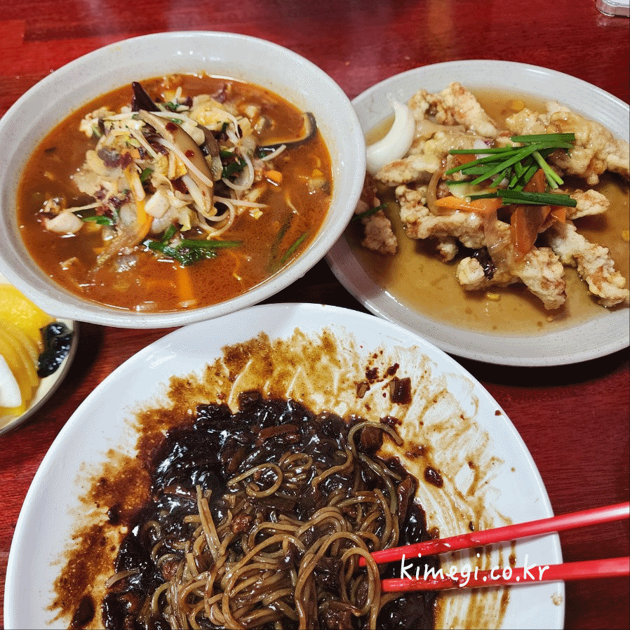 중화원에서는 해물누룽지탕과 짬뽕이 가장 유명한 메뉴에요. 누릉지탕은 조금 사이즈가 크고 오늘은 짜장이 너무 먹고 싶었기에 짜장, 짬뽕, 탕수육 중국집 국룰 세트로 주문했어요. 중화원에 세트가 있다는 이야기는 아닙니다.