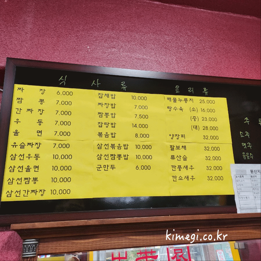 중화원 메뉴판