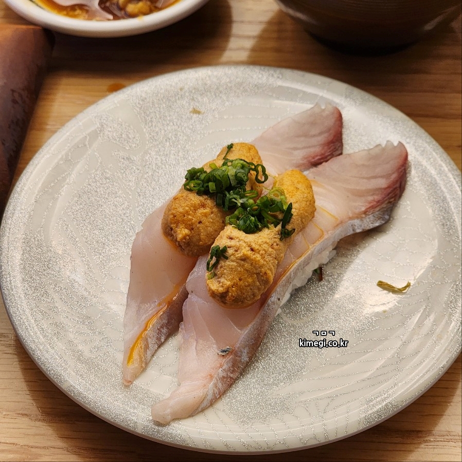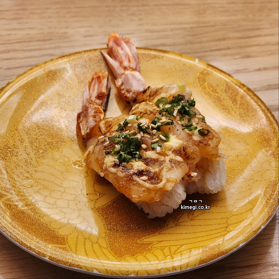 주문을 한 초밥은 동그란 접시가 아닌 네모난 접시에 나와요. 장어도 맛있었고 가리비 소금구이도 너무 맛있었어요. 회전 초밥집의 단점은 흡입하느라 맛을 잘 못느낀다는 점이에요. 그런데 그런게 좋아서 가는 것도 있어요.